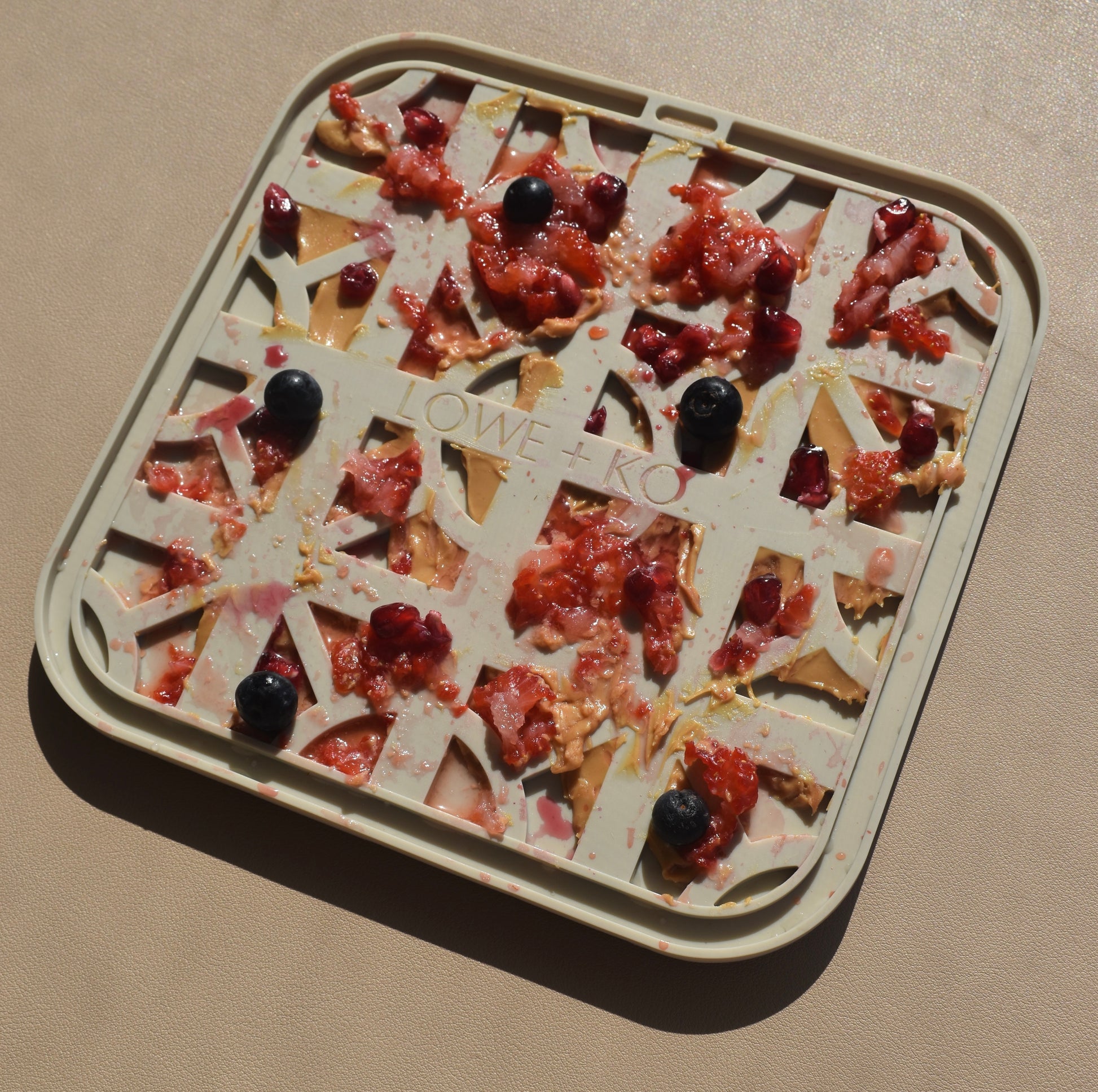 - Misty Beige Lick Mat: Designed to enrich your dog’s licking experience, promoting slower eating and dental hygiene while providing a soothing activity.